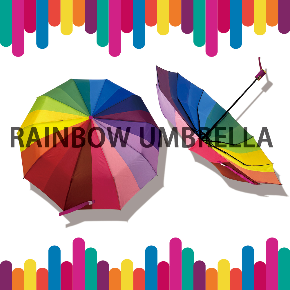 2、傘面采用彩虹色組合,色彩鮮艷絢麗,瞬間吸引眼球。
